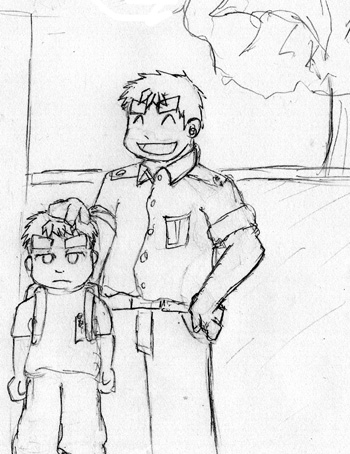 ここからハジマタ何となく年齢差兄弟と入学式な絵を描きたいと思って。 破天荒な兄と冷めた弟みたいなベタ設定を描いてみたくて。 結果。膨らんだ妄想を形にし始めました。 出来れば漫画を描きたいんだけどそこまで画力追いついてないっていう。 今はまだ脳内設定を固め始めてる段階です。見てもそこまで面白くないですヨ |